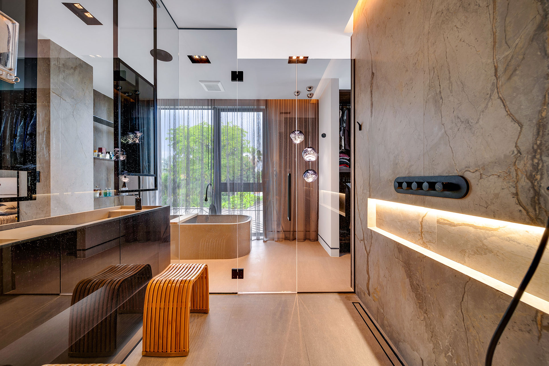 When designing, I begin by looking at the architectural elements that stand out naturally. Such features include a breathtaking view, a fireplace, or floor to ceiling windows to bridge the exterior with the interior. From there, I build out and designs a strong symmetrical balance to create a perfect harmony between the structure, lighting, and details.