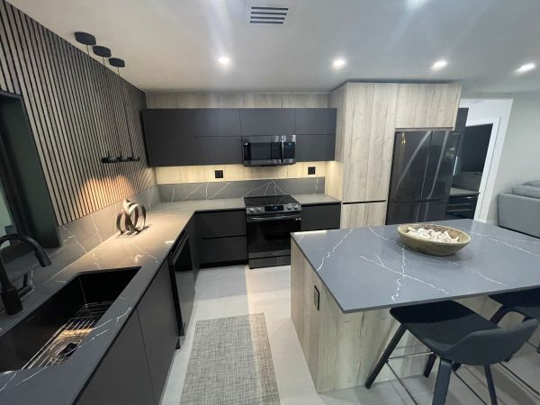 During this remodeling project, the overall design and layout will be updated to create a more functional and modern space. As part of this project, new cabinets, countertops, and appliances will be installed as well as flooring, lighting, and backsplash to add a finishing touch!