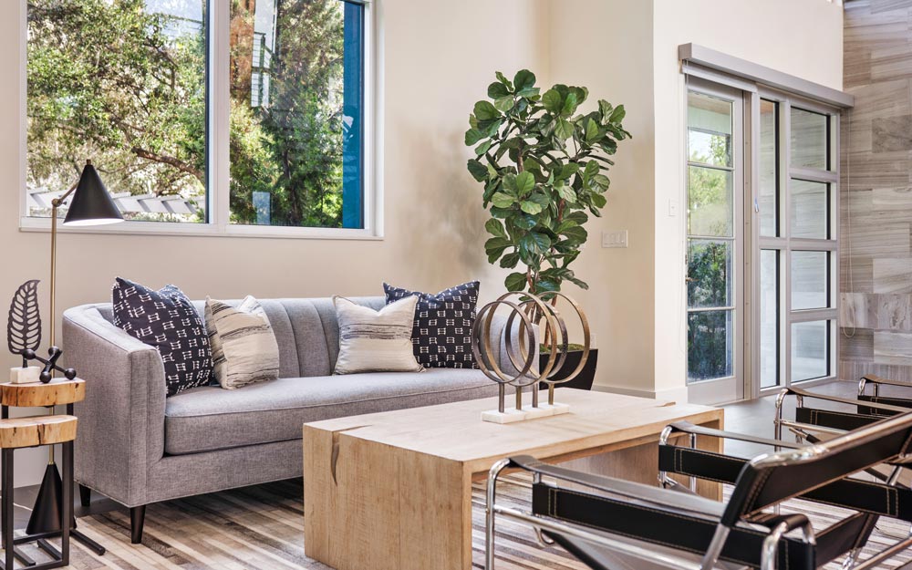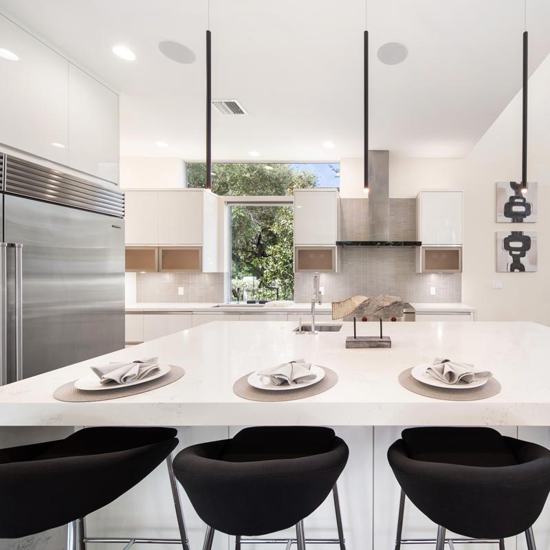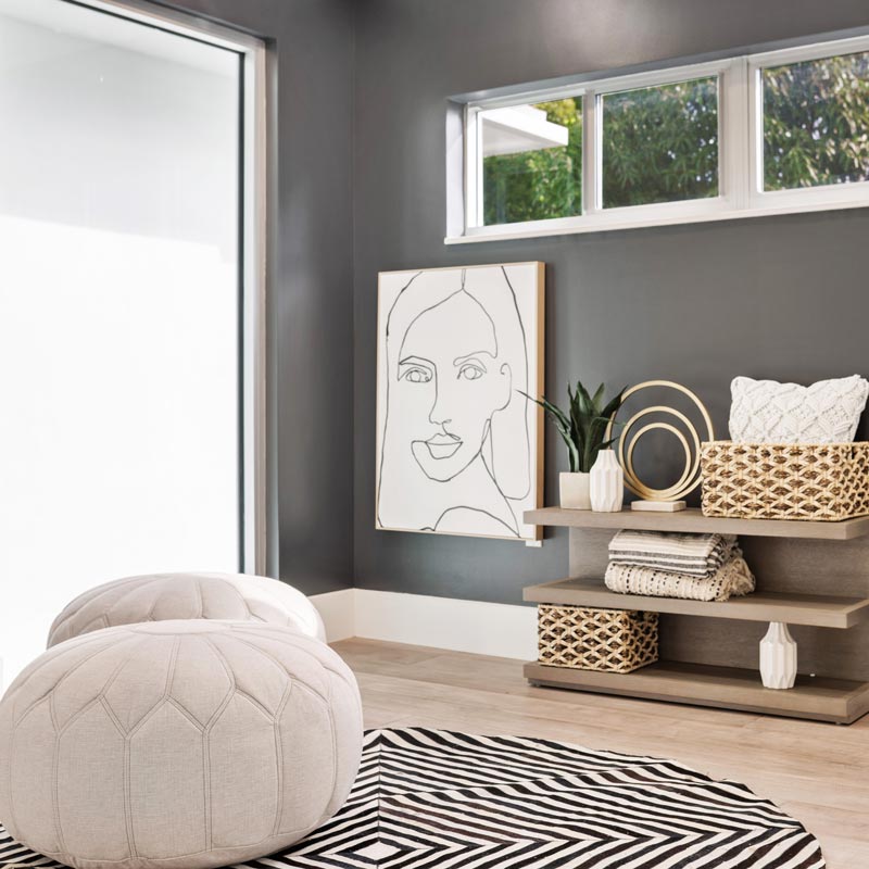 Setting the stage was the focus to sell this modern home. The style went from flat to refined urban modern. We married an ultra-luxurious interior with a Zen-inspired, glamorous design that mixes the clean lines of classic modernism with natural materials, rich textures, and custom furniture.